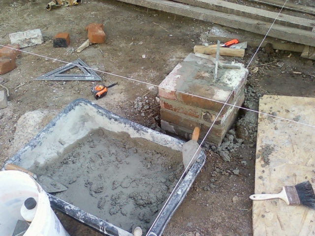 Reclaimed brick used in foundation pier